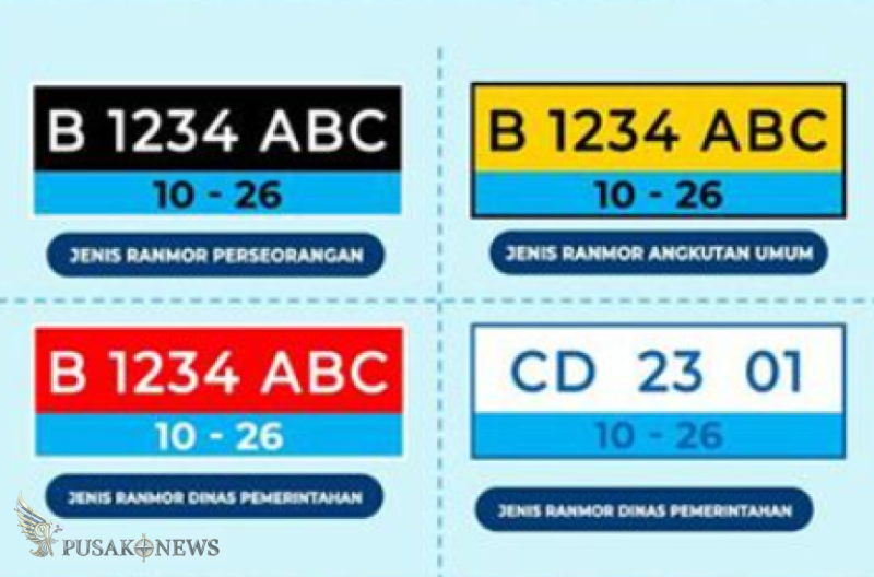 Berdasarkan Peraturan Polri (Perpol) Nomor 7 Tahun 2021 Pasal 45 Ayat 2, terdapat lima kombinasi warna pelat nomor yang disesuaikan dengan fungsi dan peruntukannya masing-masing :