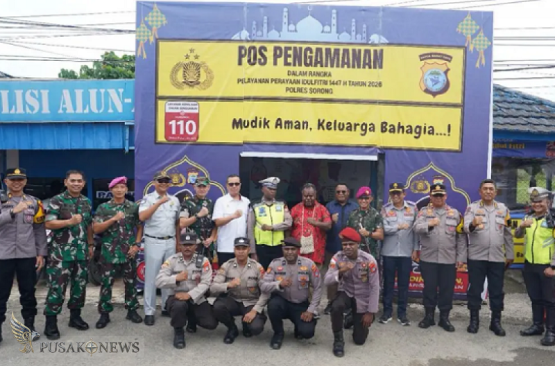 PusakoNews.com, Sorong - Menjelang Hari Raya Idulfitri 1447 Hijriah, Pemerintah Provinsi Papua Barat Daya bersama Forum Koordinasi Pimpinan Daerah (Forkopimda) melakukan peninjauan langsung terhadap kesiapan posko terpadu dan layanan pengamanan di sejumlah titik strategis di wilayah Sorong, Kamis (19/03/2026).