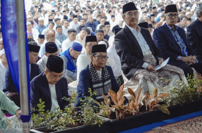 PusakoNews.com, Jakarta - Sejumlah tokoh nasional melaksanakan salat Idul Fitri 1447 Hijriah secara bersama di Masjid Universitas Al-Azhar Indonesia (UAI), Jakarta Selatan, Sabtu (21/3/2026). Kegiatan ini berlangsung khidmat sekaligus menjadi ajang silaturahmi lintas tokoh bangsa.