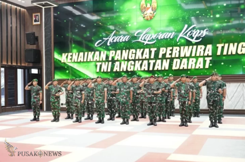 PusakoNews.com, Jakarta - Sebanyak 28 Perwira Tinggi (Pati) TNI Angkatan Darat resmi menerima kenaikan pangkat dalam Upacara Korps Kenaikan Pangkat yang dipimpin Kepala Staf Angkatan Darat (KSAD) Maruli Simanjuntak di Markas Besar TNI AD, Jakarta, Senin (23/3/2026).