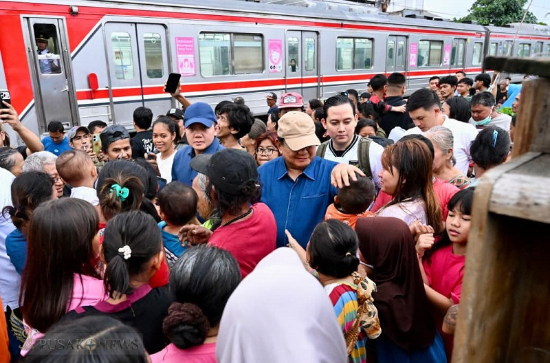 PusakoNews.com, Jakarta - Prabowo Subianto melakukan kunjungan mendadak ke permukiman warga di Kelurahan Kramat, Kecamatan Senen, Jakarta Pusat, Kamis (26/3) sore. Kehadiran Presiden disambut antusias oleh masyarakat yang tidak menyangka akan bertemu langsung dengan kepala negara di lingkungan tempat tinggal mereka.