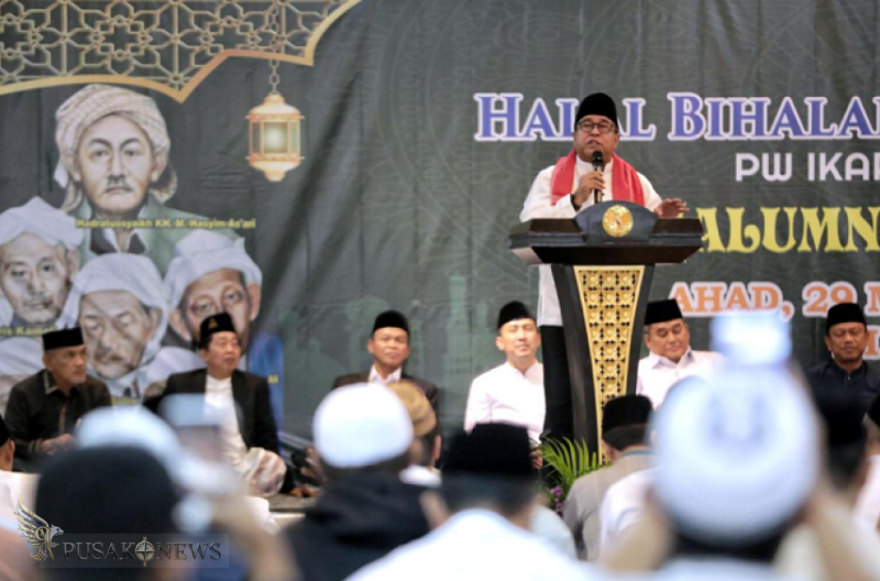 PusakoNews.com, Jakarta - Wakil Gubernur DKI Jakarta, Rano Karno, menyoroti tantangan ekonomi ke depan yang dipengaruhi dinamika global saat menghadiri acara Halalbihalal dan Haul Masyayikh IKAPETE DKI Jakarta di kawasan TMII.